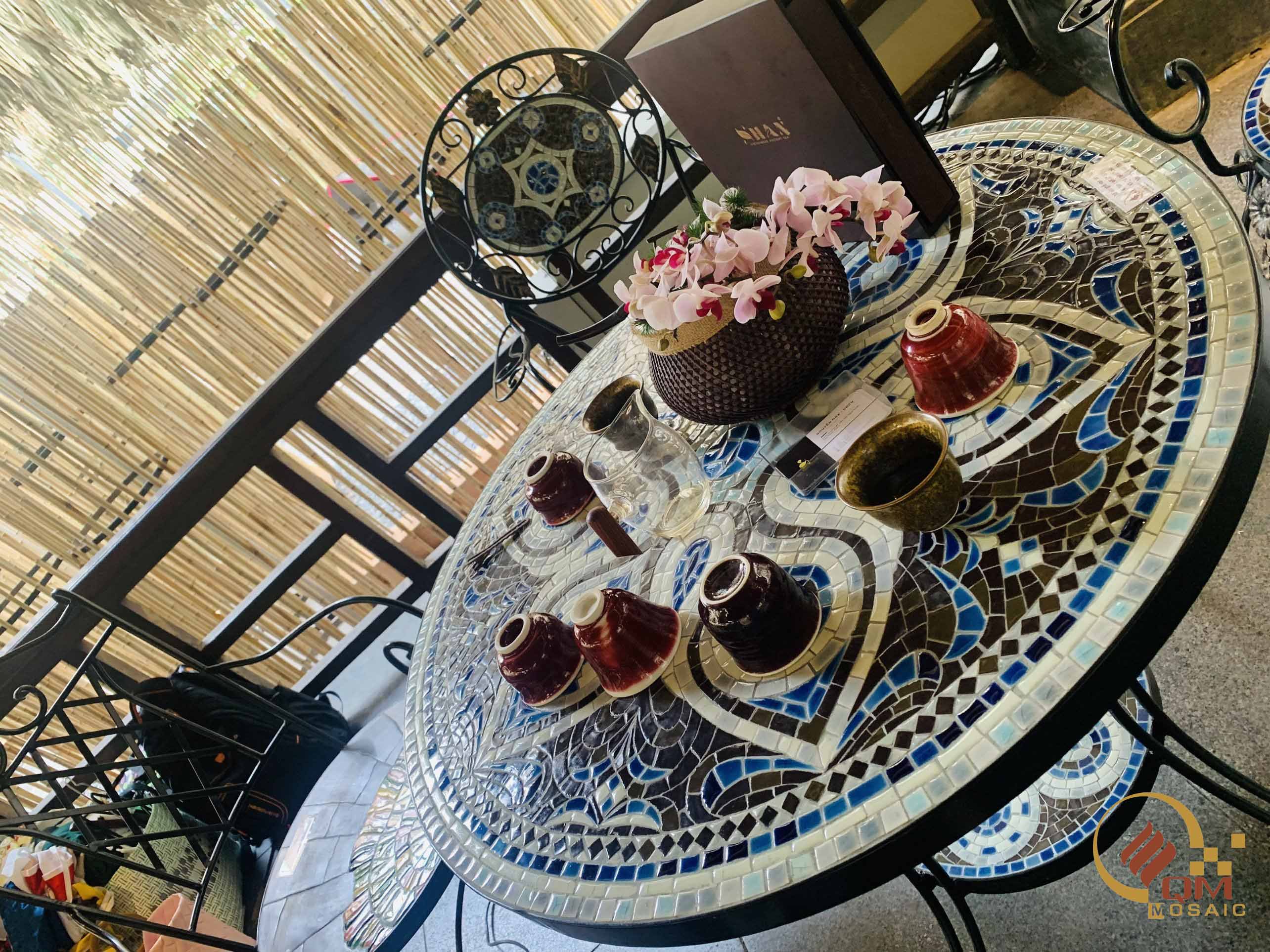Những bộ bàn ghế thiết kế rất kỳ công được làm từ chất liệu Gốm MOSAIC vô cùng bền bỉ và tinh tế cho không gian ngoài trời, tạo ra không gian được hòa mình vào không khí của thiên nhiên, “ góc sân và khoảng trời “ là nơi lý tưởng để nói những câu chuyện thật với người bạn yêu thương và tin tưởng.