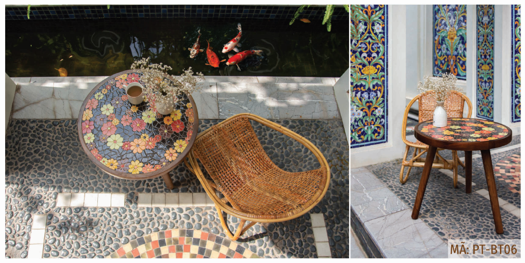 - Thiết kế độc đáo: Từ mẫu bàn hoa gốm, bàn họa tiết module, hay các mẫu bàn con vật ngộ nghĩnh đến các phong cách hiện đại, cổ điển, tân cổ điển đều được chính QMosaic thiết kế