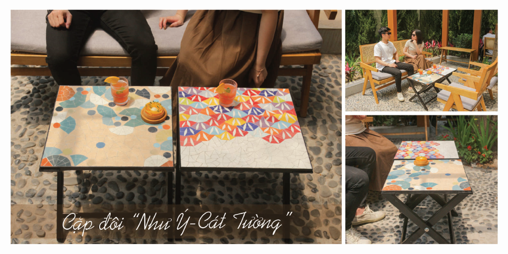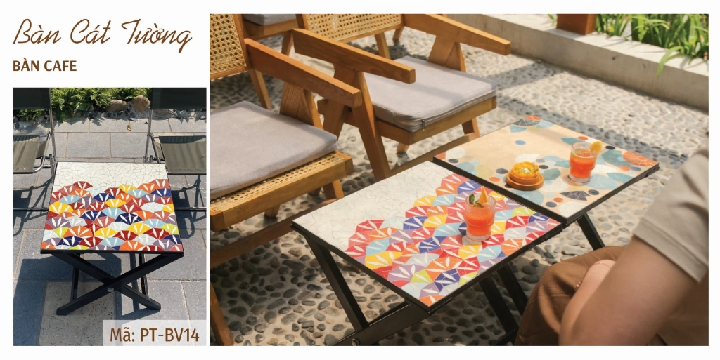 Bàn trà, cafe bằng Gốm Mosaic - Họa tiết Cát Tường